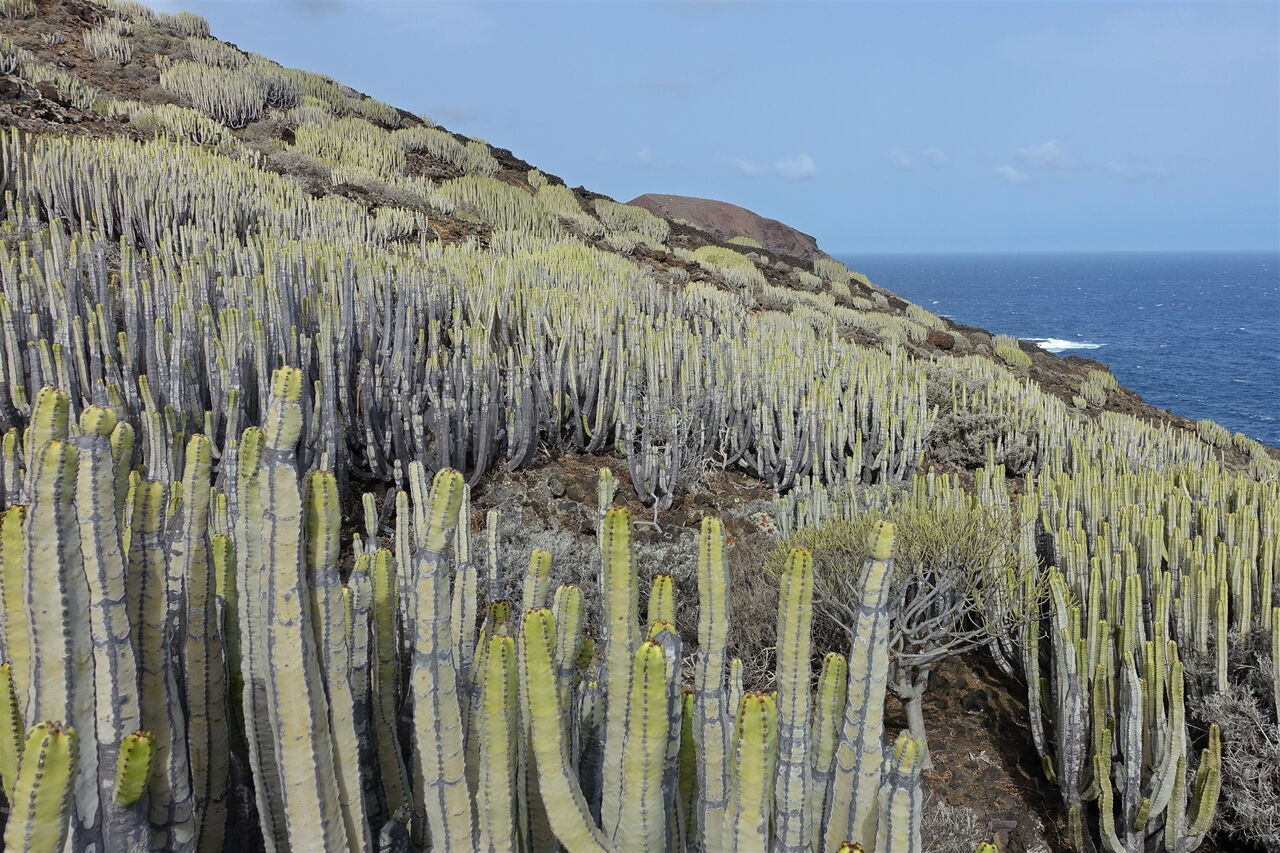 Der Nordosten von El Hierro ist so gut wie gar nicht touristisch erschlossen, hat aber unentdeckte Naturschönheiten zu bieten, die auf dieser spektakulären Wanderung zu sehen sind. Besonders beeindruckend sind die unzähligen Gesellschaften von Kanaren-Wolfsmilch, das Brandungstor und die Badebecken Charco Manso. Ein kulinarischer Höhepunkt ist eines der besten Restaurants auf El Hierro. Was braucht der Mensch zu seinem Glück? Draußen sein!