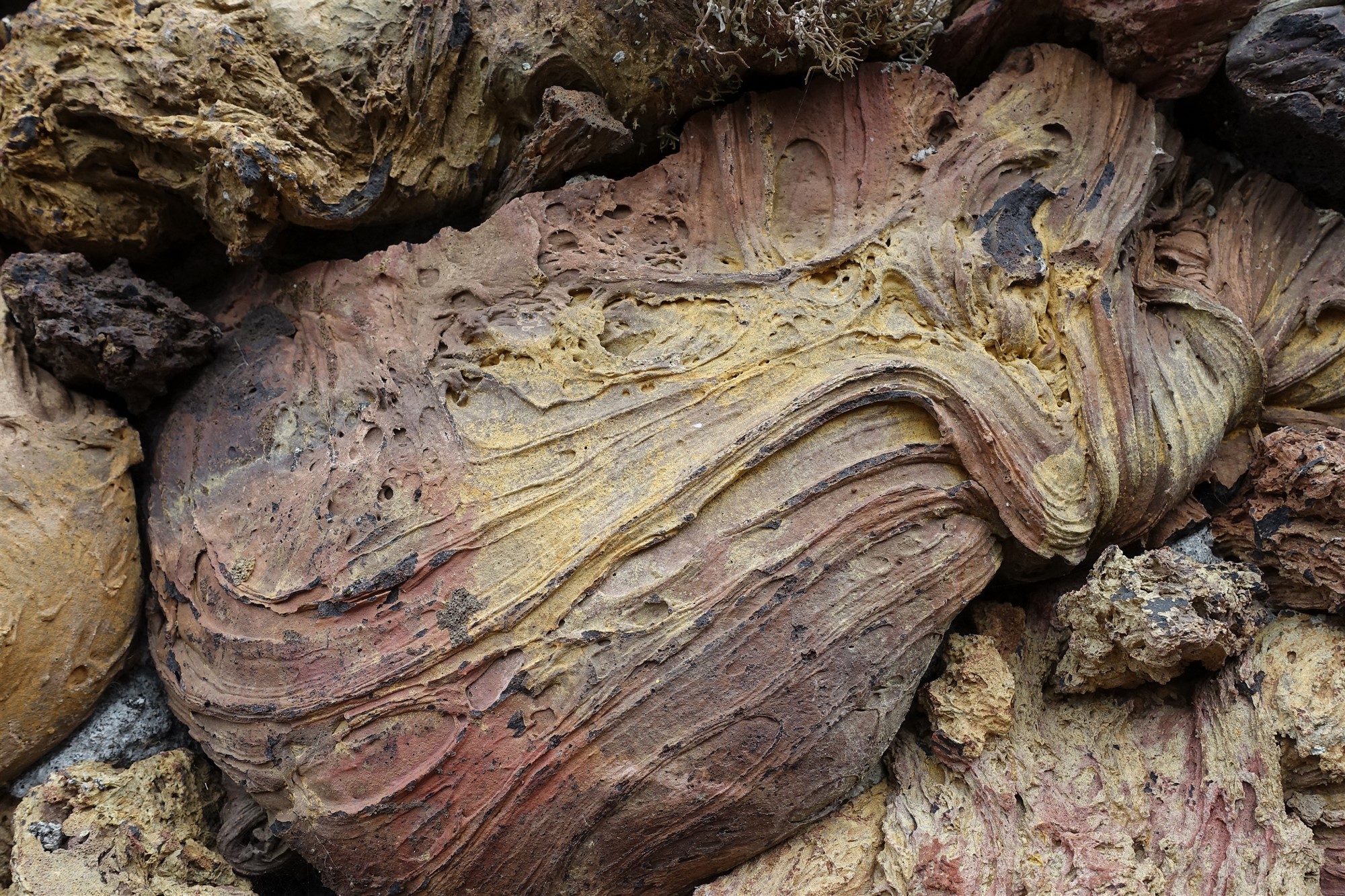 Wir nehmen den linken Abzweiger Richtung Gualisancho. Wer etwas essen möchte, geht geradeaus weiter und trifft dort auf das (05) Restaurant in Echede (360 m). Auf der so gut wie gar nicht befahrenen Straße kommen wir an wunderschönen Villen und Anwesen vorbei. Wir ignorieren Abzweiger, im Zweifel helfen weiß-gelbe Markierungen dabei, den richtigen Weg zu finden. Schlussendlich gabelt sich die Straße, direkt vor uns befindet sich ein kleines Haus, das kunstvoll mit Lavabrocken verkleidet ist. Auf einem Pfad zwischen Weinstöcken und einer Steinmauer gehen wir direkt an diesem Haus rechts vorbei. Unterhalb der alten Mülldeponie wandern wir durch Malpais und im weiteren Verlauf auf einem Trampelpfad über die rotbraunen Hänge des Vulkans La Cancela, bis wir auf schwarze Lapilli treffen. Unser Weg mündet in den Camino von Valverde nach Tamaduste, während wir bereits links unterhalb Tamaduste sehen. Auf einem bestens gekennzeichneten Camino geht es bis zum Ausgangspunkt.