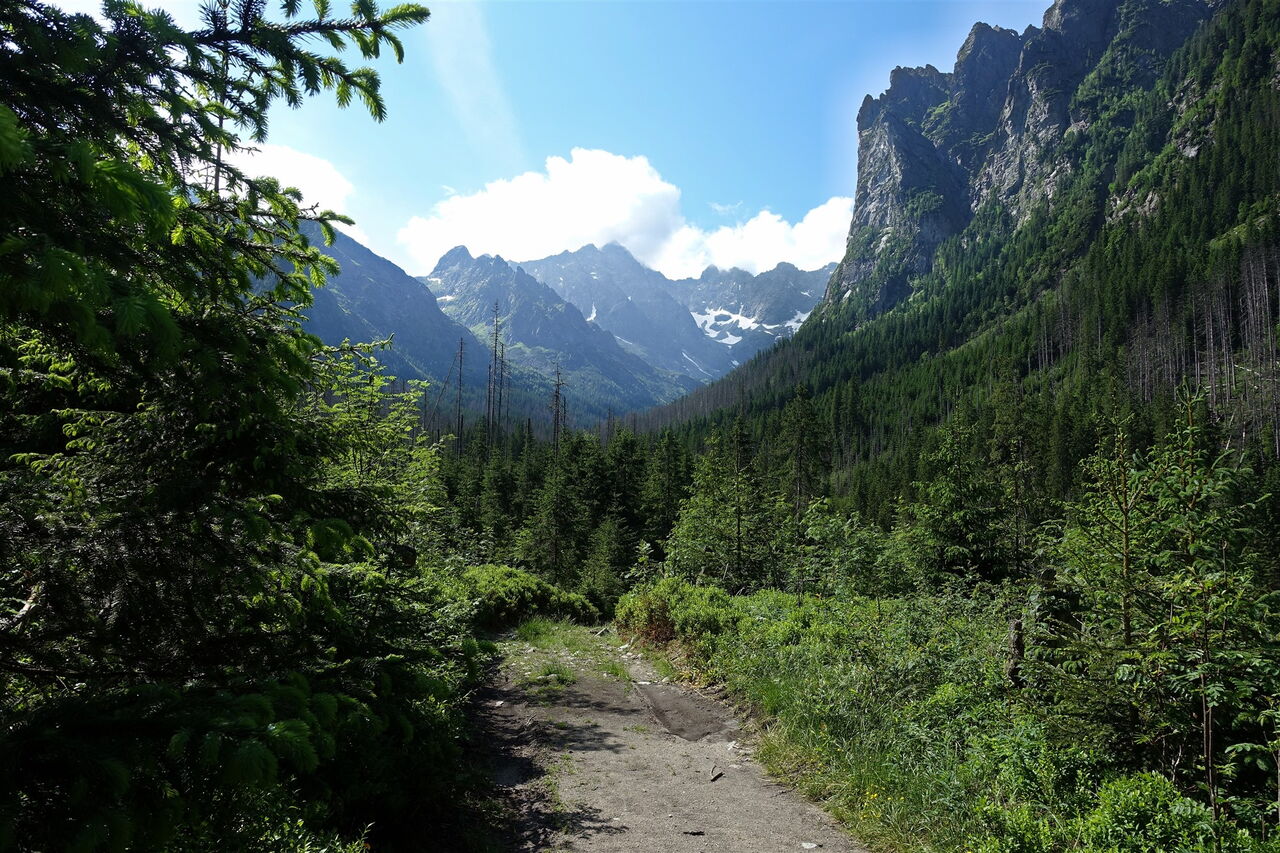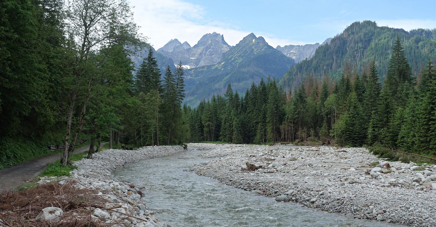 Nachdem wir die Nacht im komfortablen Hotel Montfort verbracht und ein fürstliches Frühstück genossen haben, können wir den Tag gemütlich angehen, da wir auf der heutigen Tagesetappe nur 12 km und wenige Höhenmeter zu bewältigen haben. Entlang der polnischen Grenze wandern wir durch das längste Tal der Hohen Tatra, das 10 km lange Bielovodská Dolina. Wir lauschen den ständigen Wassergeräuschen des Biała Woda – dem Weißwasserfluss – und wandern tiefer in die entlegene Bergwelt bis zu einem faszinierenden Hochtal. Blickt man Richtung Talschluss, erheben sich dort am Hauptkamm der Hohen Tatra Größen wie der 2429 m hohe Východná Vysoká, der 2654 m hohe Gerlachovský štít oder der 2503 m hohe Rysy. Leichte Wanderung – Zeit für Gefühle.