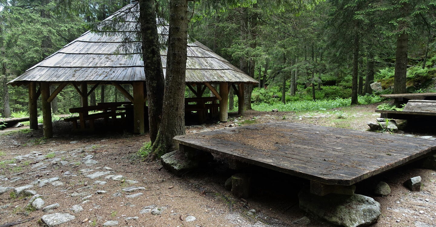 Wir überqueren das erste Mal den 03 Fluss Biela Voda (1045 m) und erreichen einen großen freien Platz mit einem überdachten Picknickplatz.