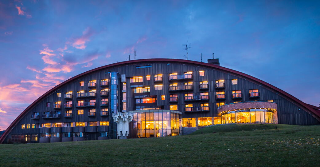 Der 14 km lange Kalkkamm der Belaer Tatra liegt fast senkrecht zum Hauptkamm der Hohen Tatra und erstreckt sich vor uns am Horizont von Ost nach West. Der Pfad mündet in eine Piste, die an einer Absperrung endet. Rechts von uns befindet sich eine Brücke, wir gehen geradeaus auf der asphaltierten Straße weiter. Kurz vor dem kleinen Dorf 05 Tatranská Javorina (1027 m) gabelt sich der Weg. Geht man halb links, so gelangt man zur hölzernen römisch-katholischen Kirche Anna, die 1903 erbaut wurde. Nach einigen Metern erreicht man die Hauptstraße, an der man links bergauf geht, um dann rechts in die Stichstraße bis zum Hotel Montfort vorzugehen.