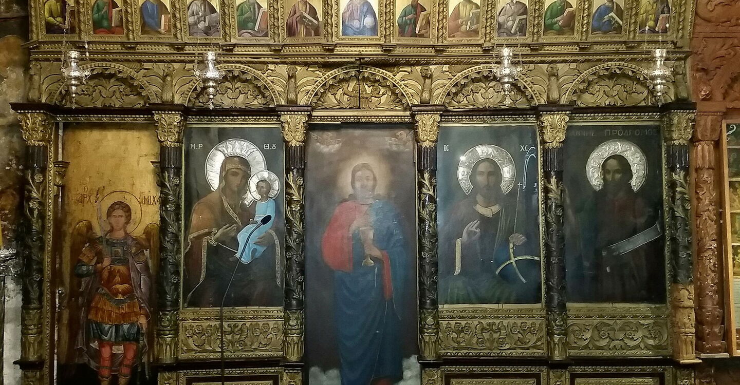 Hier gehen wir rechts in die kleine Gasse, bei der folgenden Weggabelung halb rechts und erreichen nach insgesamt 260 m von der Moschee die (05) Ekklisia Agios Fanourios (9 m) – eine geheimnisvolle dunkle Kirche, die aufgrund des jahrhundertelangen Kerzenrußes stark beschädigt wurde. Wir setzen unseren eingeschlagenen Weg fort, bis wir bei der Galleria Celina und 3 Brunnen auf eine Gassenkreuzung treffen. Hier gehen wir links auf dem grauschwarz gepflasterten Stein. Bevor wir einen Torbogen unterqueren, rechts befindet sich ein Brunnen, biegen wir rechts in die sehr schmale Gasse ab. Die Gasse endet, rechts folgen wir der Ausschilderung Richtung Kirche, gehen halb links an dieser vorbei und treffen auf das Hotel Saint Michelle und die Stadtmauer. Wie gehen 30 m rechts an dieser entlang, um dann links durch einen Fußgängertunnel in den Burggraben zu gelangen. Dort gehen wir links Richtung Ausgangspunkt.