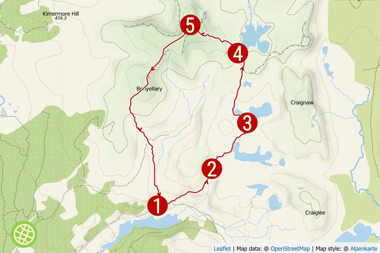 Pkw-Anfahrt: Der Start der Wanderung befindet sich im Südwesten von Schottland, im Herzen des Galloway Forest Park. Eine 6 km lange einspurige Straße führt von dem Dorf Glentrool bis zu einem Parkplatz, an dem die Straße endet. Geokoordinaten Start: 55.093130 -4.484016. Busservice: keiner.