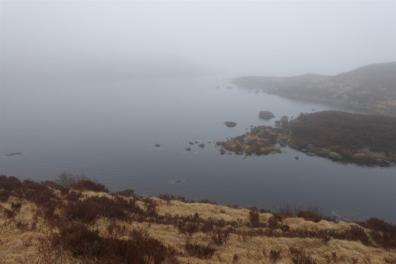 Im weiteren Verlauf führt der Pfad direkt auf einen Bachlauf zu, der in den Gairland Burn mündet. Diesen Bachlauf queren wir nach weiteren 50 m und wandern nun wieder parallel zum Flusslauf. Wir gehen am Ufer des Loch Valley entlang. Inzwischen ist die Wegführung nicht mehr eindeutig und es gibt mehrere Möglichkeiten, den Weg fortzusetzen. Der linke Pfad in Richtung einer Anhöhe ist extrem moorig, die etwas bessere Alternative ist der Pfad entlang des 03 Loch Neldricken (356 m).