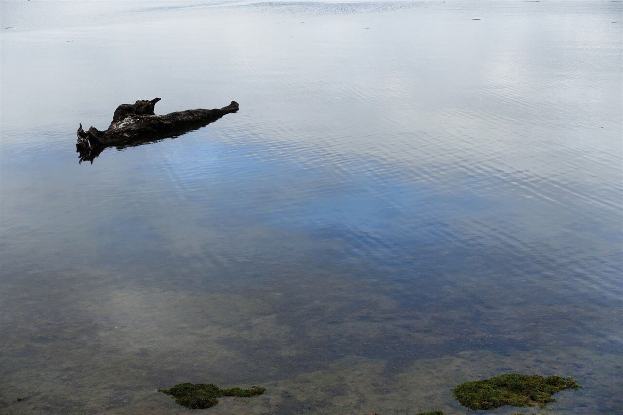 Bei einer weiteren Eisenstange betreten wir erneut eine Lichtung, dort gabelt sich der Pfad und wir gehen halb rechts leicht bergauf. Bei einer besonders sumpfigen Stelle wurden Baumstümpfe in den Morast gelegt. Der Pfad steigt auf einen kleinen Hügel an und führt an einem weiteren Hügel links vorbei. Sobald wir auf ein kleines Waldstück mit Birken gelangen, kann man schon in der Ferne die Dünen mit dem goldgelben Sand ausmachen, 03 der erste Strand (1 m). Dieser schönste Strandabschnitt auf der heutigen Wanderung lädt zum Verweilen ein. Es ist eine besonders romantische Bucht, eingefasst von Felsen blickt man auf kleine vorgelagerte Inseln. Ein perfekter Ort für ein Picknick, zum Sammeln von Strandgut oder um nach Austernfischern, Tauchenten, Kormoranen, Robben im Meer oder Ottern entlang der Küste Ausschau zu halten.