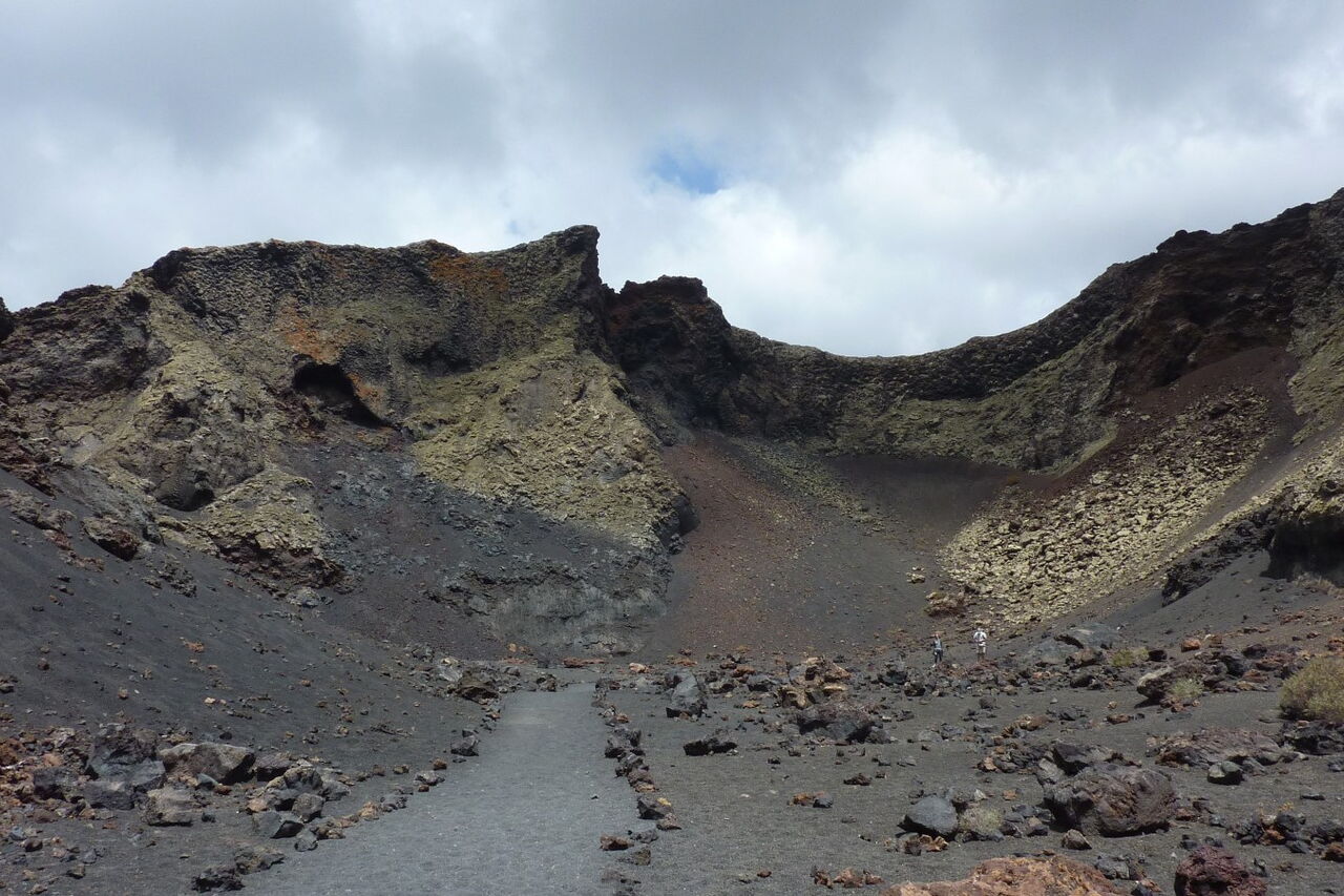 Dieser Rundwanderweg ist ein absolutes Muss für jeden Lanzarote-Urlauber. Wo hat man schon die Möglichkeit, auf einem bequemen Weg direkt in den Schlund eines Vulkankraters zu laufen? Der zentrale Krater der Caldera de Los Cuervos brach am 1. September 1730 aus. Danach bebte die Erde für weitere sechs Jahre. Am Ende waren es die größten Vulkanausbrüche der Geschichte der Kanarischen Inseln. Spektakulär aufgeschichtete Fragmente aus Lavagestein warten darauf, entdeckt zu werden. Bitte verlassen Sie auf keinen Fall die ausgezeichneten Wege - ein Fußtritt zerstört ca. 3 Jahre Evolution. Unter den Steinen befinden sich Samen, die bei Regen zum Leben erweckt werden.