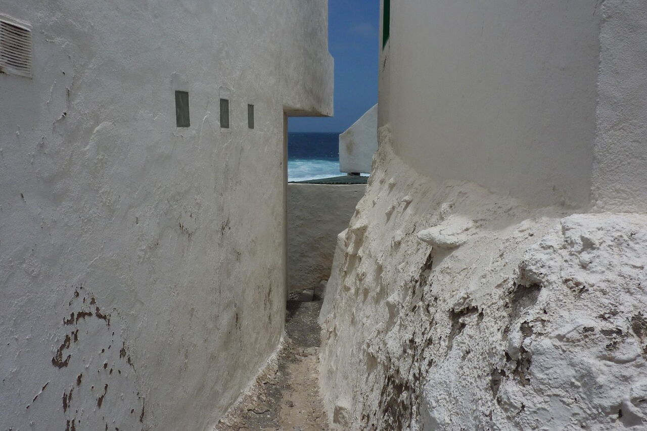 Nach einer Anhöhe können wir in der Ferne das Piratendorf (03) Tenesar (8 m) sehen. Oberhalb der steilen Klippe führt der Pfad bis in ein Barranco, dem wir rechts für 170 m in Richtung Küste folgen. Anschließend gehen wir direkt auf die weißen Häuser von Tenesar zu. Bei einer gepflegten Brotzeit kann man beobachten, wie Riesenwellen mit ihrer enormen Gewalt an der Küste brechen. Am östlichen Rand des Dorfes liegt noch versteckt die nicht ganz saubere Playa Tenesar, die man je nach Stand der Gezeiten über einen Pfad unterhalb der Klippe erreichen kann.