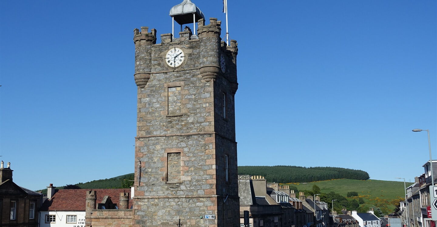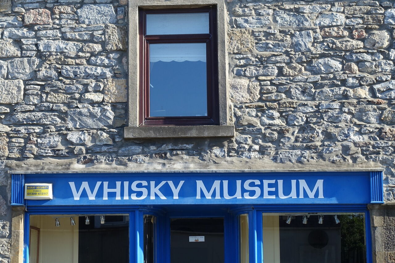 Auf Höhe der Kirche gehen wir an der Weggabelung halb links bergauf in Richtung Zentrum und erreichen den Uhrturm. Geht man nur 30 m links, so erreicht man das 05 Dufftown Whisky Museum (190 m). Es ist vom 1. April bis 30. Oktober geöffnet, die Öffnungszeiten sind von 10:00–16:00. Es vermittelt Informationen über die Geheimnisse der Whiskyherstellung. Zudem wird ein allgemeiner Einblick in das Leben und die Zeit der Whiskyschmuggler gegeben. Das Museum ist einfach gehalten.