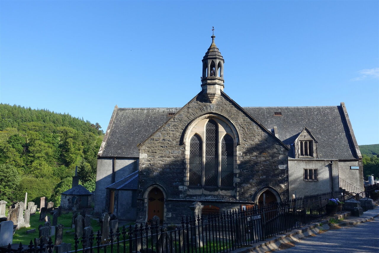 Hier gehen wir rechts und erreichen Whisky-Lagerhallen. Sie sehen so heruntergekommen aus, dass man denkt, sie würden nicht mehr genutzt. Überall stehen Verbotsschilder "keine offene Flamme oder Feuer", denn in den Hallen reift Whisky in Holzfässern – sehr gute Single Malt Whiskys lange 12 bis 21 Jahre. Nach einem kurzen Stück bergab erreichen wir die 04 Mortlach Parish Church (165 m) aus dem 13. Jahrhundert. Bereits im Jahr 566 hat der Heilige Molug aus dem Kloster Lismore an dieser ältesten Stätte der christlichen Verehrung in Schottland gepredigt.