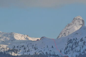 Großartige Variante durch ein verlassenes Tal mit Tiefschneegarantie.