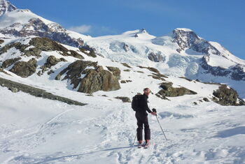 Aufstieg mit Traumblicken auf das Monte-Rosa-Massiv. Eine Abfahrt in unberührter und unverspurter Natur. Top Tour.