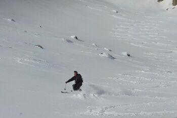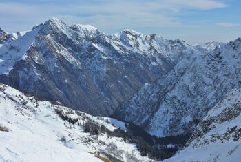 Kurze, spektakuläre Abfahrt mit 900 hm, die bei Neuschnee besonders schön ist.