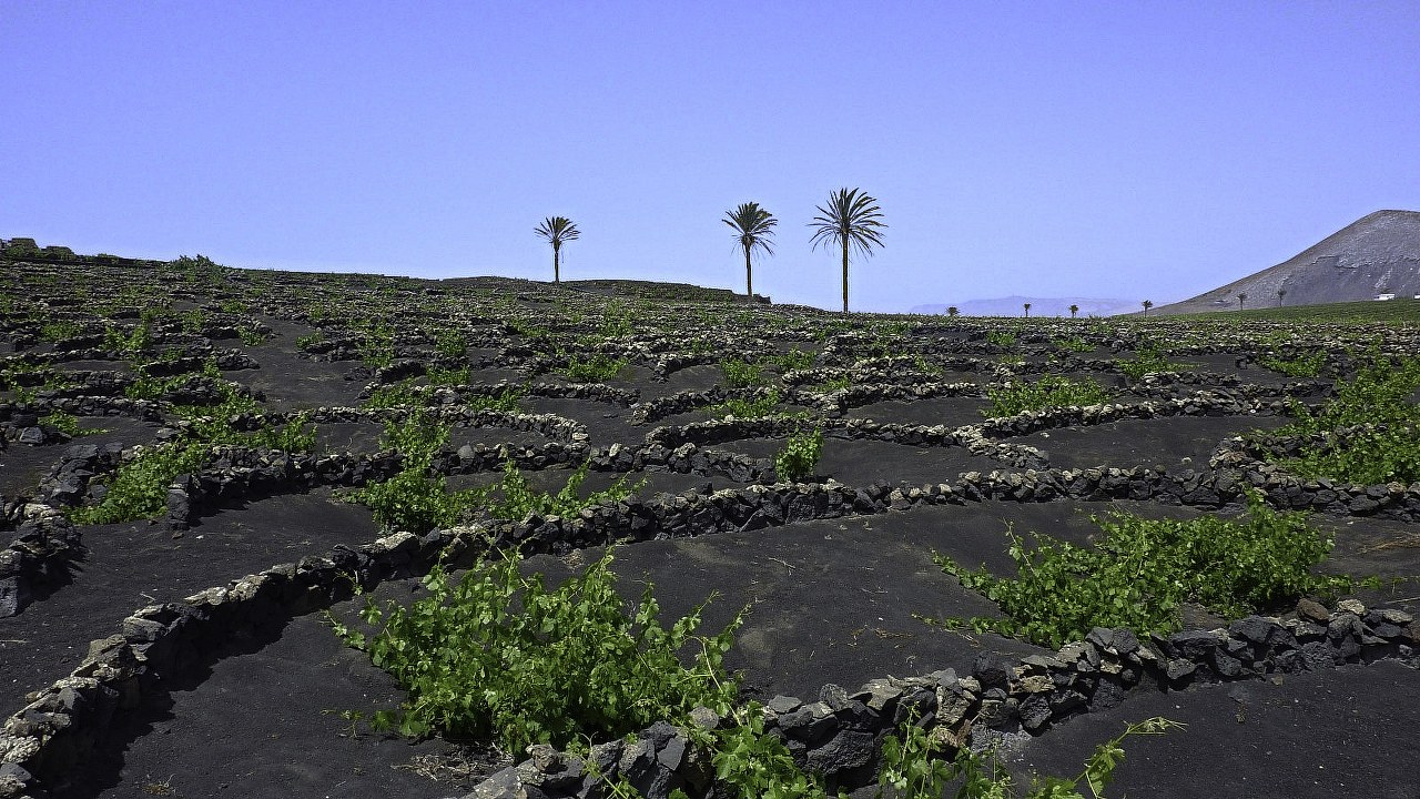 Das New Yorker Museum of Modern Art widmete der Landschaft rund um die Weinanbaugebiete von Lanzarote bereits eine eigene Ausstellung! Und Lanzarote brüstet sich damit, eine der charakteristischsten und spektakulärsten Landschaften weltweit zu haben. Dazu zählen Tausende von Weinstöcken, die in bis zu 3 m tiefe Mulden gegraben worden sind, um den darunterliegenden fruchtbaren Boden zu erreichen. Jeder Weinstock wird durch seine eigene Lavasteinmauer geschützt. Doch wie können die Reben auf dieser trockensten der Kanarischen Inseln mit durchschnittlich nur 120 mm Niederschlag im Jahr überhaupt zur Reife kommen? Erschwerend kommt hinzu, dass kein Süßwasser aus Lanzarote zur zusätzlichen Bewässerung genommen werden kann, da der Salzgehalt des Wassers immer noch zu hoch wäre und die Wurzel der Weinrebe eingehen würde. Die Lösung: Man pflanzte den Rebstock in eine etwa 20 cm dicke Schicht aus Picón (vulkanisches Lapilli = Vulkanasche). Diese poröse Vulkanasche nimmt die Feuchtigkeit auf, die mit dem Seewind über Nacht kommt, diese gibt sie tagsüber an den Untergrund und an die Wurzeln der Weinstöcke ab. Das bedeutet, dass die Wurzel nicht tief in das Erdreich hineinreicht, sondern sich rechts und links in 20-30 cm Tiefe unterhalb des Rebstocks ausbreitet. Beschäftigt man sich näher mit dieser einzigartigen Weinkulturlandschaft mit ihren außergewöhnlichen Weinen, so ist die logische Konsequenz: Der hier betriebene Weinanbau, in einer surrealen, eigentlich unwirtschaftlichen Vegetation ist wahrlich Kunst. | Siehe Wanderung 23: EL GRIFO MONTAÑA DE GUARDILAMA |