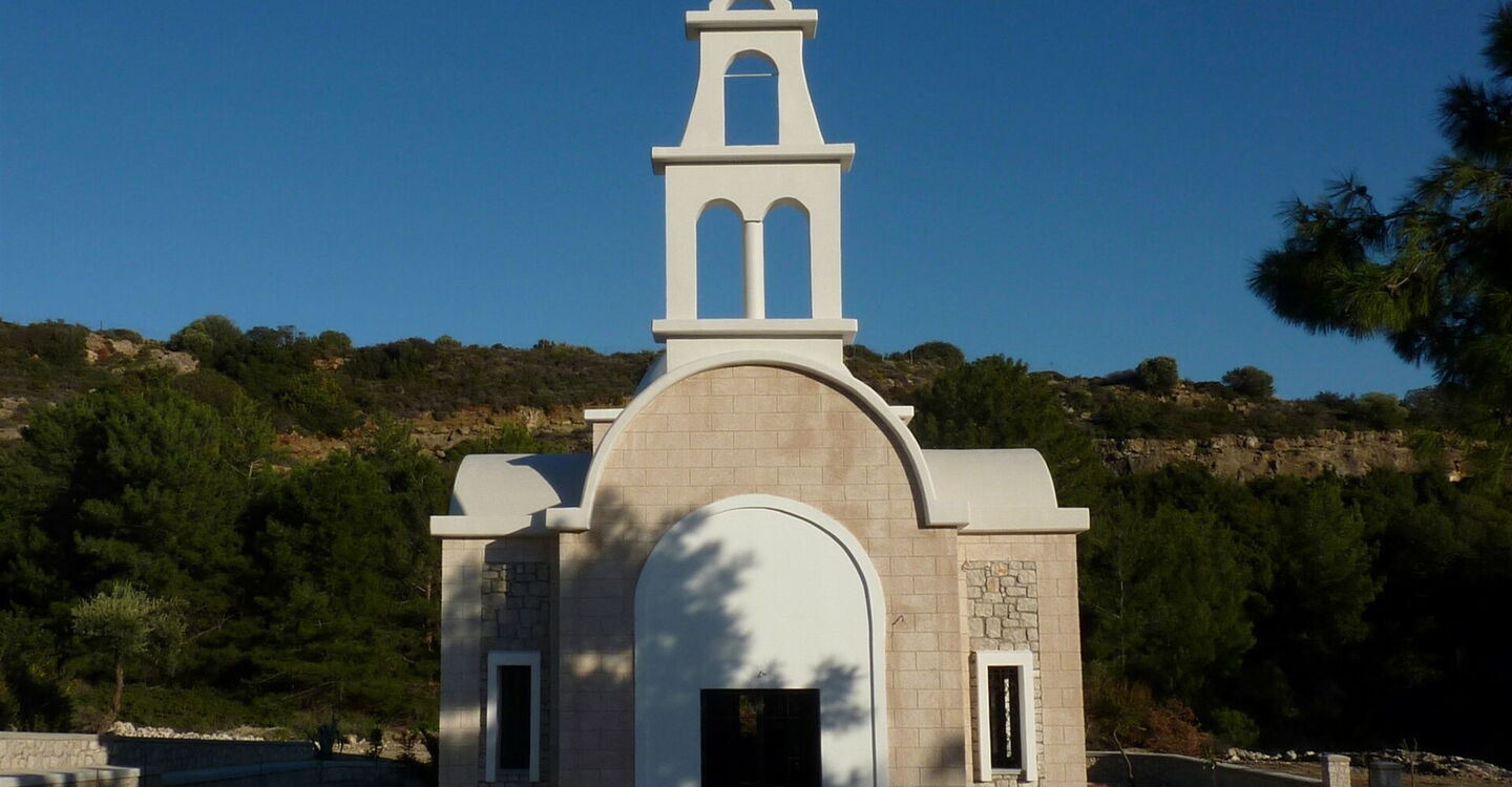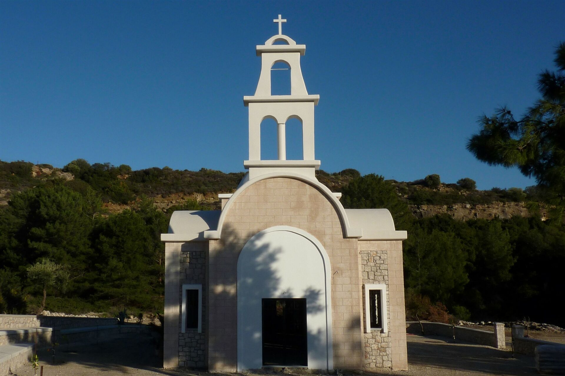 Wir folgen der Ausschilderung zum Hotel Ladiko und der Anthony-Quinn-Bucht. Es geht vorbei an einer (05) neuen Kirche (34 m), bis wir den Ausgangspunkt der Wanderung erreicht haben.