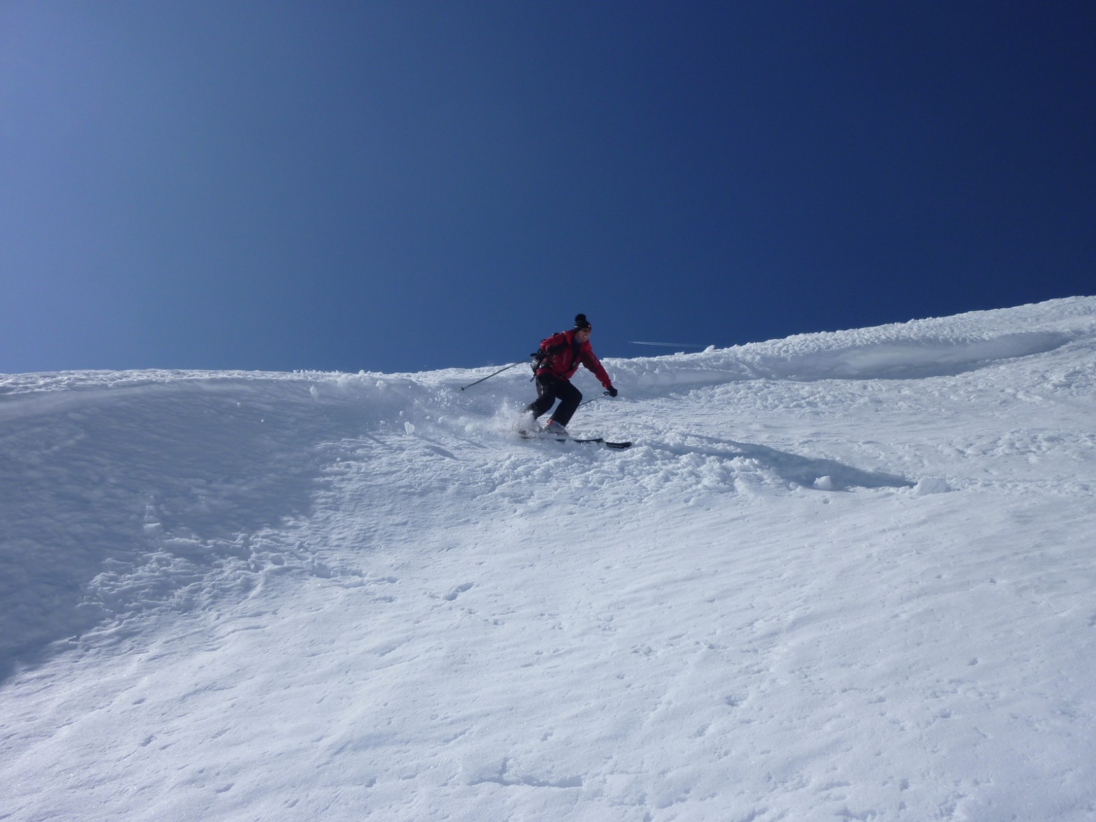 Einfache Orientierung, da der zu besteigende Piz Boè immer vor uns liegt. Bei der Abfahrt sind die Wegpunkte 4 und 5 zu beachten. Die Abfahrt führt über einen Südhang. Folgende Ausrüstung wird empfohlen: Produkte für alpine Sicherheit im Schnee, Tourenski, ggf. Steigeisen zum Aufstieg zum Piz Boè und Skitourenhelm. Es empfiehlt sich die Einkehr in das Rifugio Maria bei der Bergstation, welches nach Maria Piaz, der Pionierin des Tourismus am Pordoipass, benannt wurde. Beste Jahreszeit: Januar bis April. Uns erwarten kurze Stücke mit bis zu 45° Hangneigung.