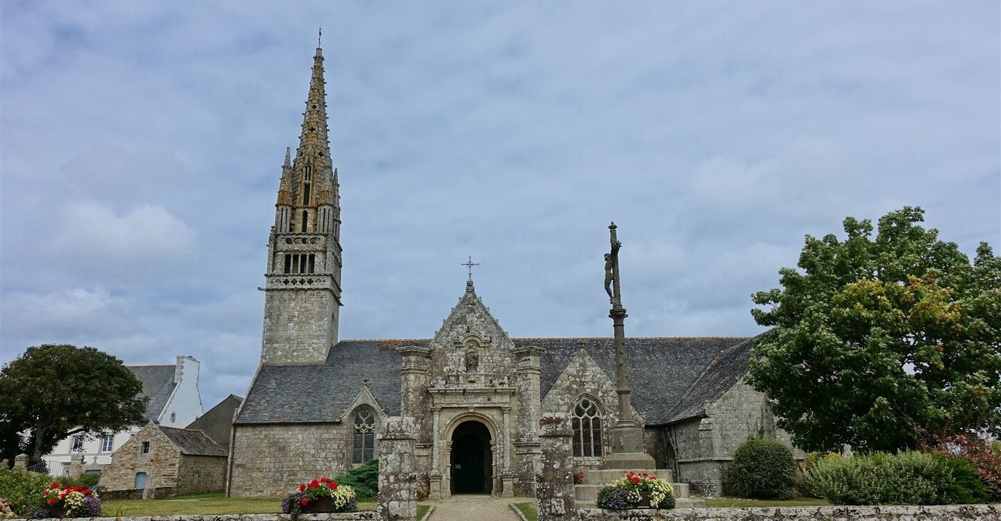 Vom Parkplatz gehen wir direkt links neben der Kirche 01 Église Notre-Dame de la Clarté et Saint-Budoc (93 m) durch die Gasse und auf der weiterführenden Straße an den Einzelhäusern vorbei. Am Ende der Straße laufen wir rechts und nach 570 m, bei der Kreuzung verlassen wir die Hauptstraße nach links, auch ausgeschildert Richtung Pellay. Die Straße schlängelt sich durch Häuser, dahinter haben wir freien Blick auf das Meer.