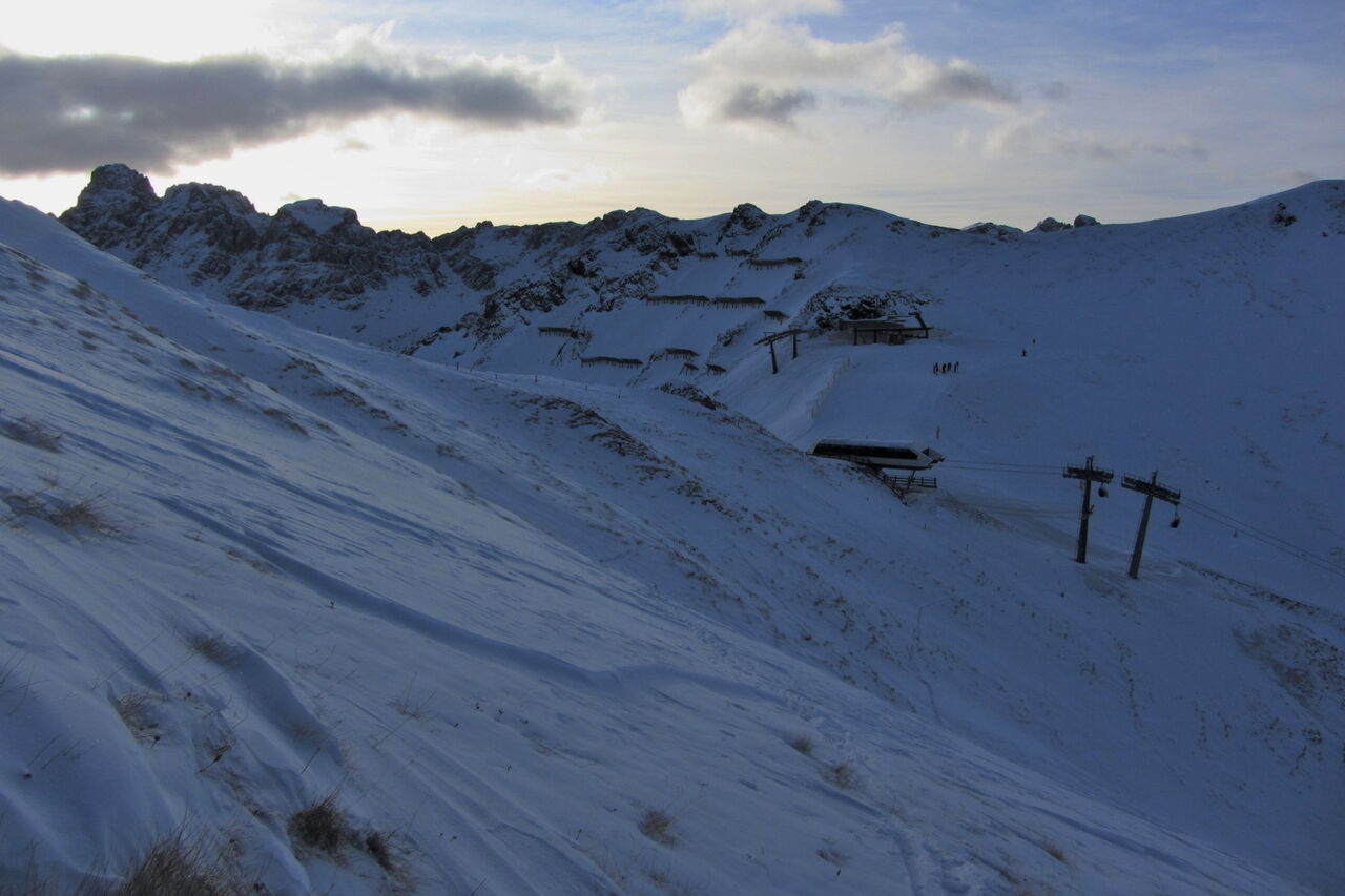 Kurzer Aufstieg und einfache Orientierung. Bei wenig Schnee ist der Wanderweg im unteren Teil nicht zu befahren. Die Abfahrt führt über einen Nordosthang. Folgende Ausrüstung wird empfohlen: Produkte für alpine Sicherheit im Schnee, Tourenski und Skitourenhelm. Es gibt verschiedene Restaurants zur Einkehr im Skigebiet. Beste Jahreszeit: Januar bis April. Uns erwarten kurze Stücke mit bis zu 30° Hangneigung.