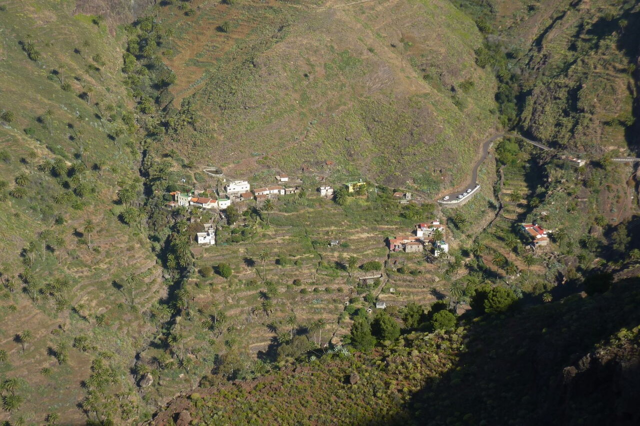 Vom (01) Start und Ziel Caserio Taco (158 m) gehen wir auf der Anfahrtsstraße taleinwärts bergauf. Bald wird das Tal zunehmend schmaler und wir passieren die Casas de Pastrana. Die Straße endet und geht bei einer Parkbucht in den Wanderweg über. Wir folgen diesem Weg durch das Barranco de Benchijigua in Richtung des Dorfes Benchijigua, steigen in das Barranco herunter und wandern ein kurzes Stück im Trockenflussbett, um oberhalb von zwei runden Wasserauffangbecken dieses wieder zu verlassen. Bei guter Sicht hat man bereits ab hier einen sagenhaften Panoramablick auf den Roque de Agando.