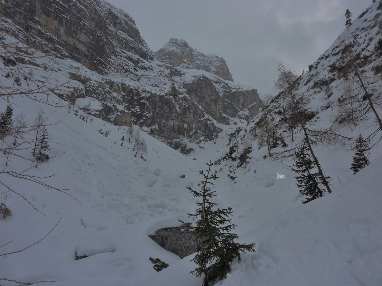 Einfache Orientierung auf der gesamten Strecke. Der Einstieg ist sehr steil! Die Abfahrt führt über einen Nordhang. Folgende Ausrüstung wird empfohlen: Produkte für alpine Sicherheit im Schnee, Freerideski und Skitourenhelm. Es empfiehlt sich die Einkehr in das Rifugio Cimabanche am Ende der Tour. Beste Jahreszeit: Januar bis April. Uns erwarten kurze Stücke mit bis zu 45° Hangneigung.