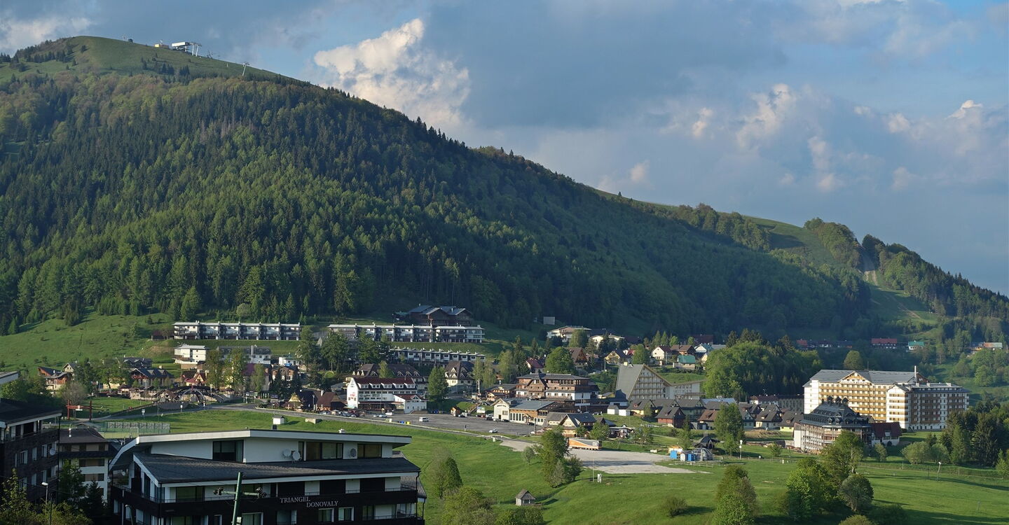 Vom großen Parkplatz in 01 Donovaly (973 m) passieren wir die Brücke über die Bundesstraße und marschieren auf der nachfolgenden Straße in südwestliche Richtung. Auf der Straße, oberhalb mehrerer Lifte, erreichen wir die Ortschaft Polianky. Direkt hinter der 1894 gebauten Kapelle gehen wir bei der Weggabelung halb links, verlassen die Zivilisation und tauchen ein in die Natur.
