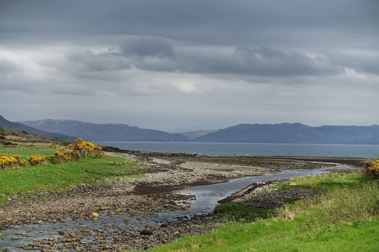 Dort folgen wir dem ausgezeichneten und perfekt angelegten Wanderweg Richtung Camasunary-Bucht. Sobald man den Mam Pass erreicht hat, ergibt sich eine herrliche Aussicht auf die felsige Gebirgslandschaft der Cuillins. Bei guter Sicht lässt sich der höchste Gipfel der Cuillins und der Insel Skye, der 992 m hohe Sgùrr Alasdair, ausmachen. Nach dem Abstieg erreichen wir die 03 Camasunary Bay (14 m). Sattgrüne Weiden und eine hellsandige Bucht stehen im Kontrast zu den schwarzen Gipfeln des Cuillin-Hauptkamms.