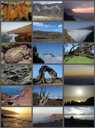Das Landschaftsbild auf der Wanderung durch die atemberaubende Vulkanlandschaft ist geprägt vom tiefen Schwarz des Vulkangesteins, verschiedensten rötlichen Tönen der Felswände und einem großen gelblichen Felsen – allesamt Folgen unterschiedlichster vulkanischer Ausbruchsarten. Dazwischen befinden sich die grünen Tupfer von Wolfsmilchgewächsen und den bis auf den Boden gebogenen und knöchrigen Zedernwacholderbäumen. Die schönsten Aussichtspunkte liefert oftmals die Natur selbst.