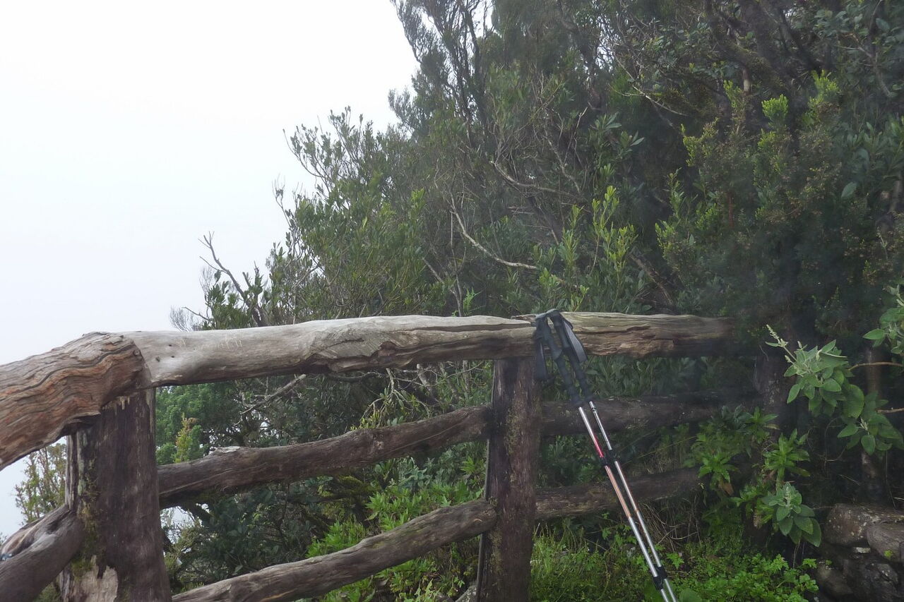 Nach weiteren 200 m folgen wir dem rechten Abzweiger und erreichen nach 40 m zwei Aussichtspunkte am (04) Mirador Risquillos de Corgo (1123 m). Dieser sehr schön angelegte Aussichtspunkt auf einem kleinen Felsplateau ist sehr oft tief vom Nebel verhüllt.