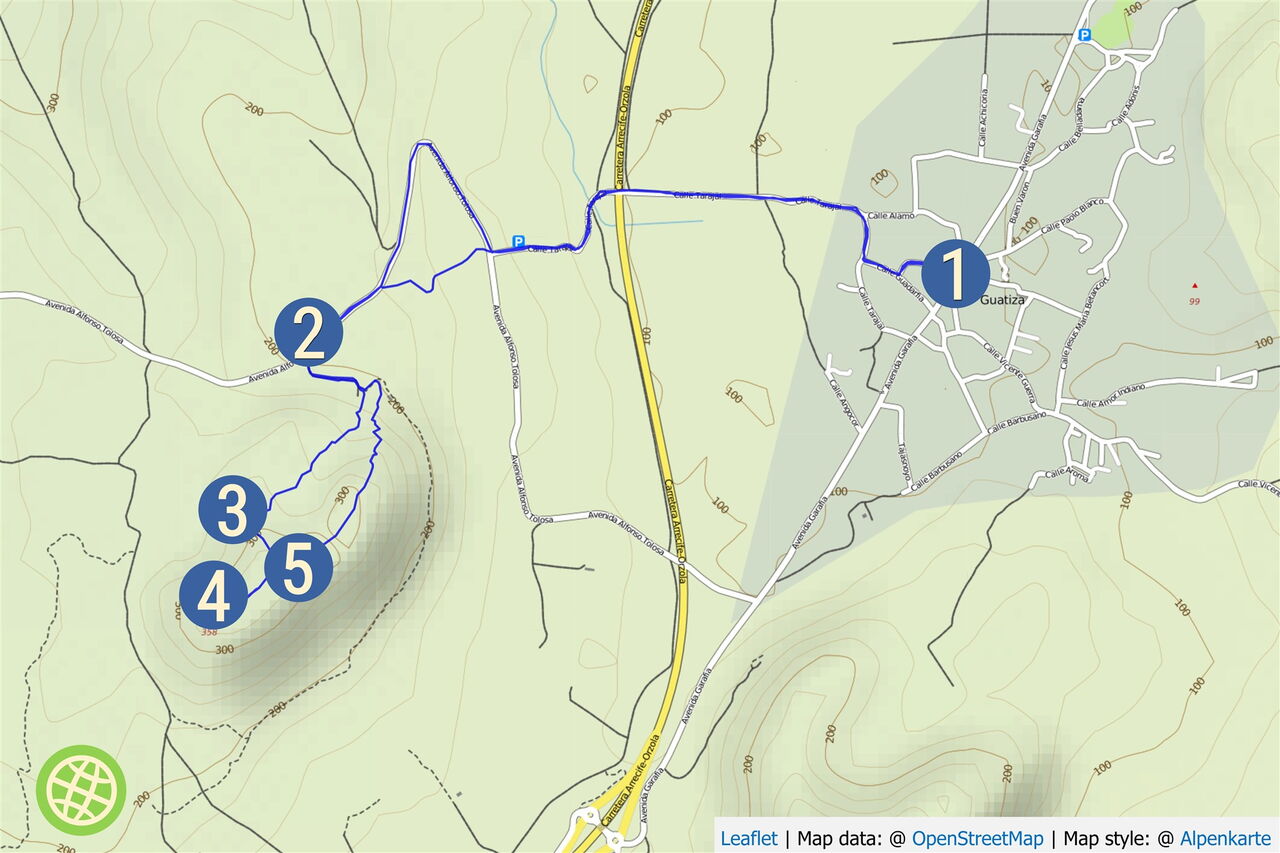 Der Ausgangspunkt der Wanderung ist das Dorf Guatiza im Nordosten von Lanzarote. Südlich von Guatiza liegen die beiden Hausvulkane Montaña Tinamala mit 330 m und Montaña de Guenia (358 m). Der höhere der beiden ist unser heutiges Ziel. Wenn man möchte und mit dem Pkw angereist ist, kann man die gesamte Wegstrecke noch um 5 km reduzieren, indem man bis zum Wegpunkt (02) fährt. Damit reduzieren sich die Höhenmeter auf 160. Trotz seiner geringen absoluten Höhe genießt man vom Gipfel aus eine wunderschöne Rundsicht.