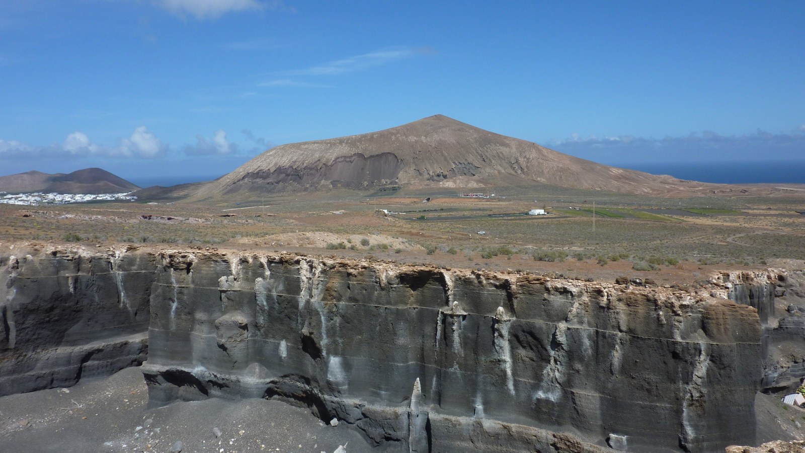 An dieser Stelle verlassen wir den Hauptweg nach rechts in den Hang. Dabei steigen wir links vom Loch, weglos in Kehren, bis auf den Gipfel der (05) Montaña de Guenia (358 m). Im weiteren Verlauf führt der Pfad auf dem Grat entlang, bis wir in den offenen Vulkankessel schauen können. Links auf dem Grat führt ein Weg in den Vulkangrund, aber wir gehen rechts auf dem Grat entlang, um dann steil und weglos abzusteigen. Wir treffen auf eine Schotterpiste und gehen diese links durch ein Barranco. Nach einer Rechtskehre erreichen wir die Asphaltstraße. 250 m später verlässt ein Pfad die Asphaltstraße nach rechts zu einem Gebäude, um anschließend wieder auf die Asphaltstraße zu gelangen. Vorbei geht es am Friedhof, in Kehren bergab, über die LZ-1, um dann zum Start und Ziel in Guatiza zu gelangen.