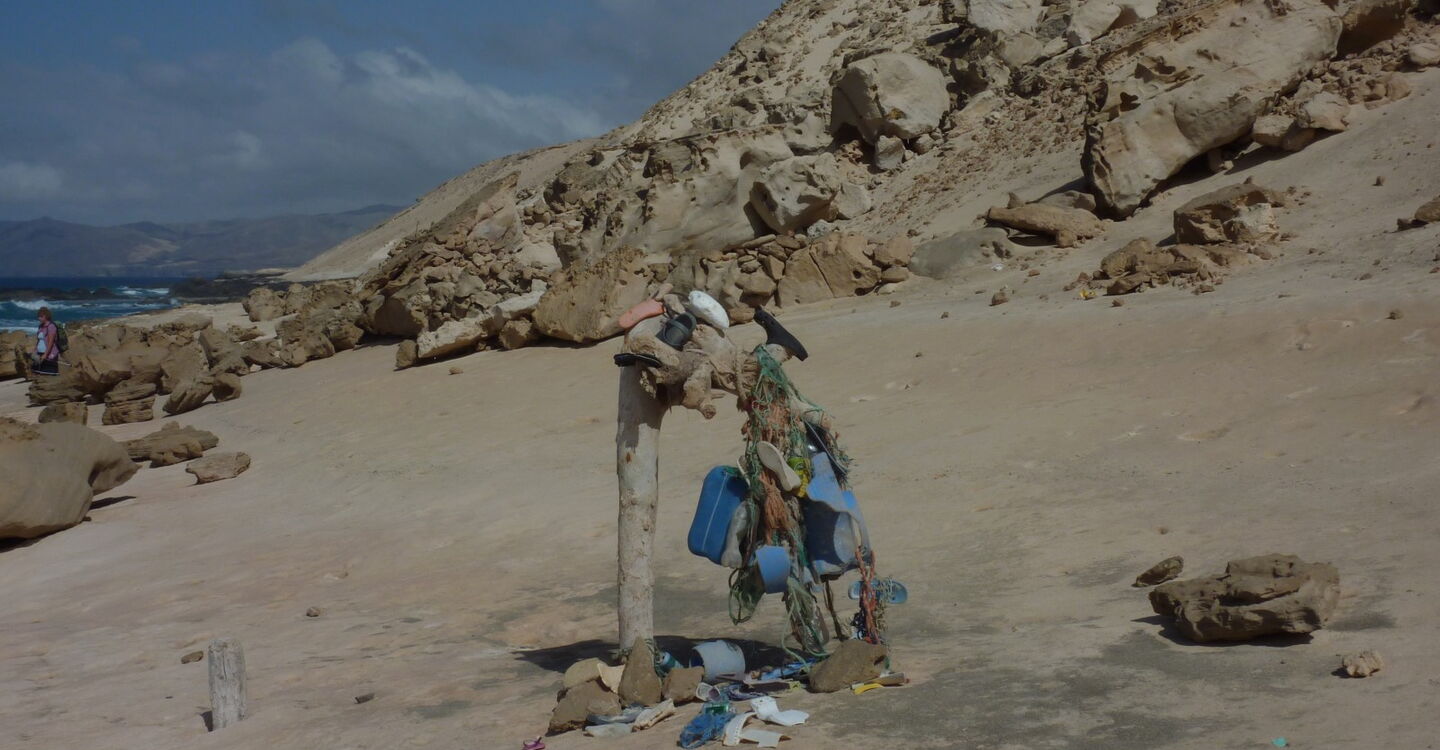 Mitunter kann hier auch kreativ gesammelter Müll betrachtet werden. Nach einiger Zeit kommen wir an die kleine, einsame Bucht. Je nach Wellengang und Stand der Gezeiten präsentiert sich ein sehr schöner Strandabschnitt, der zum Verweilen einlädt.