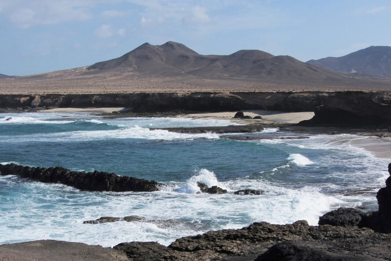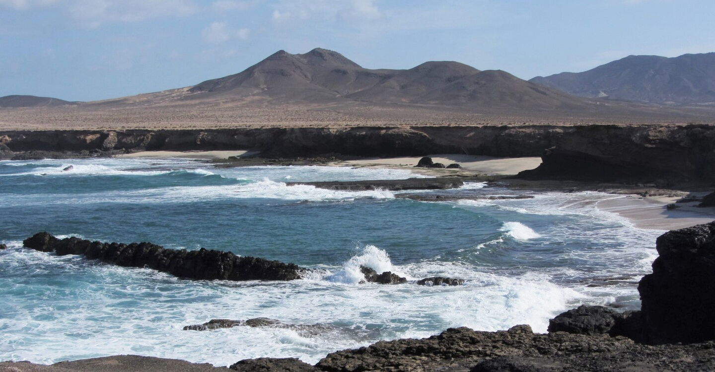 Der sehr wenig besuchte, 250 m lange und bis zu 10 m breite feine Sandstrand liegt versteckt im äußersten Südwesten von Fuerteventura, in der Nähe des Örtchens Puerto de la Cruz. ǀ Der Strand ist nach einer schwierigen Autofahrt auf einer kurzen Wanderung zu erreichen. ǀ Baden ist aufgrund der hohen Wellen nur bedingt möglich. ǀ Verschiedenes: sehr romantischer, sauberer Strand mit sauberem Wasser, teilweise Schatten, nicht mit dem Buggy erreichbar, FKK möglich, Hunde nicht erlaubt ǀ Toiletten, Duschen, Sonnenstühle und Sonnenschirme sind nicht vorhanden ǀ Aktivitäten: die Seele baumeln lassen, Boccia ǀ Tipp: Bei starken Winden, die es auf Fuerteventura oft gibt, liegt man am Playa de Ojas unterhalb der Felsen sehr windgeschützt! |