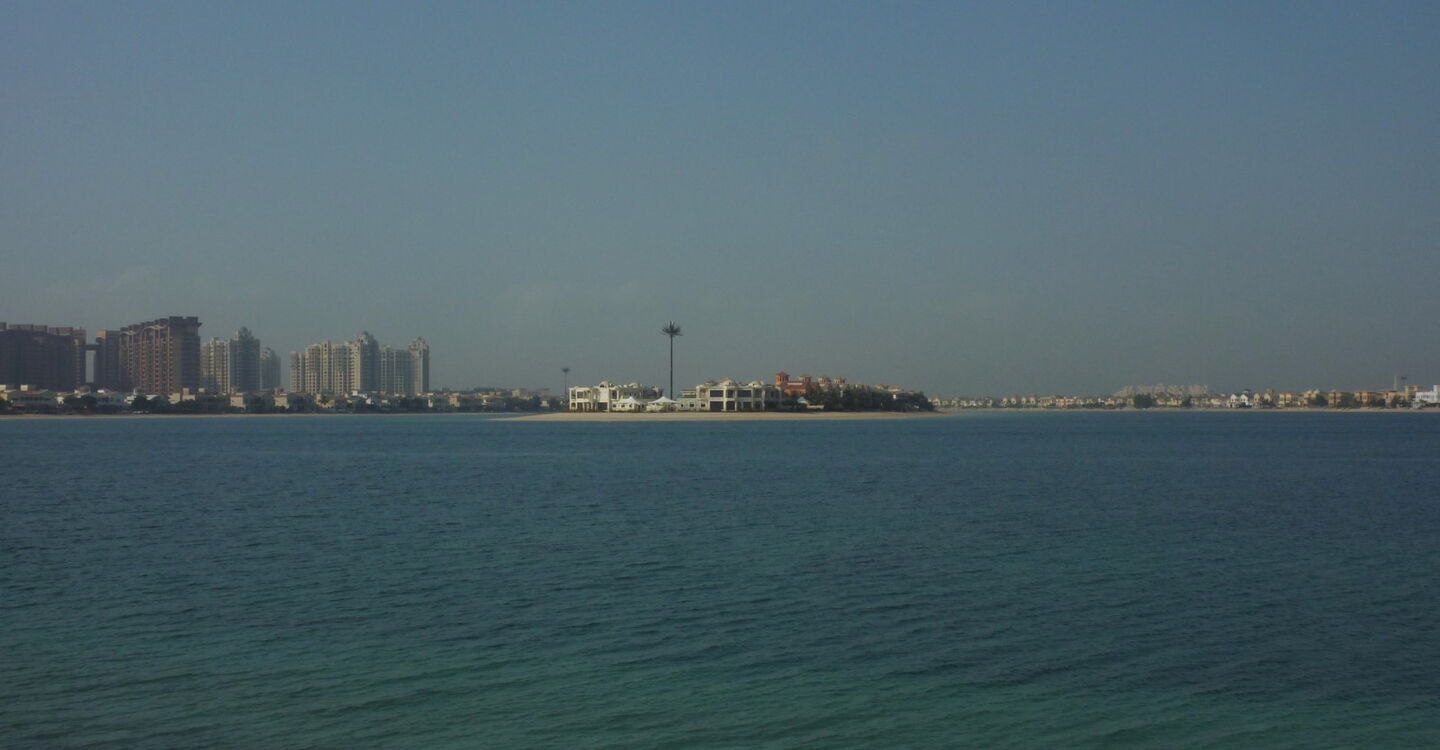 Wie ein majestätisches Tor erhebt sich die Hotelanlage Atlantis mit 1.539 Zimmern, dem eigenen Wasserpark sowie 20 Restaurants und Bars. Seit 2008 zählt es zu einem der Wahrzeichen Dubais.