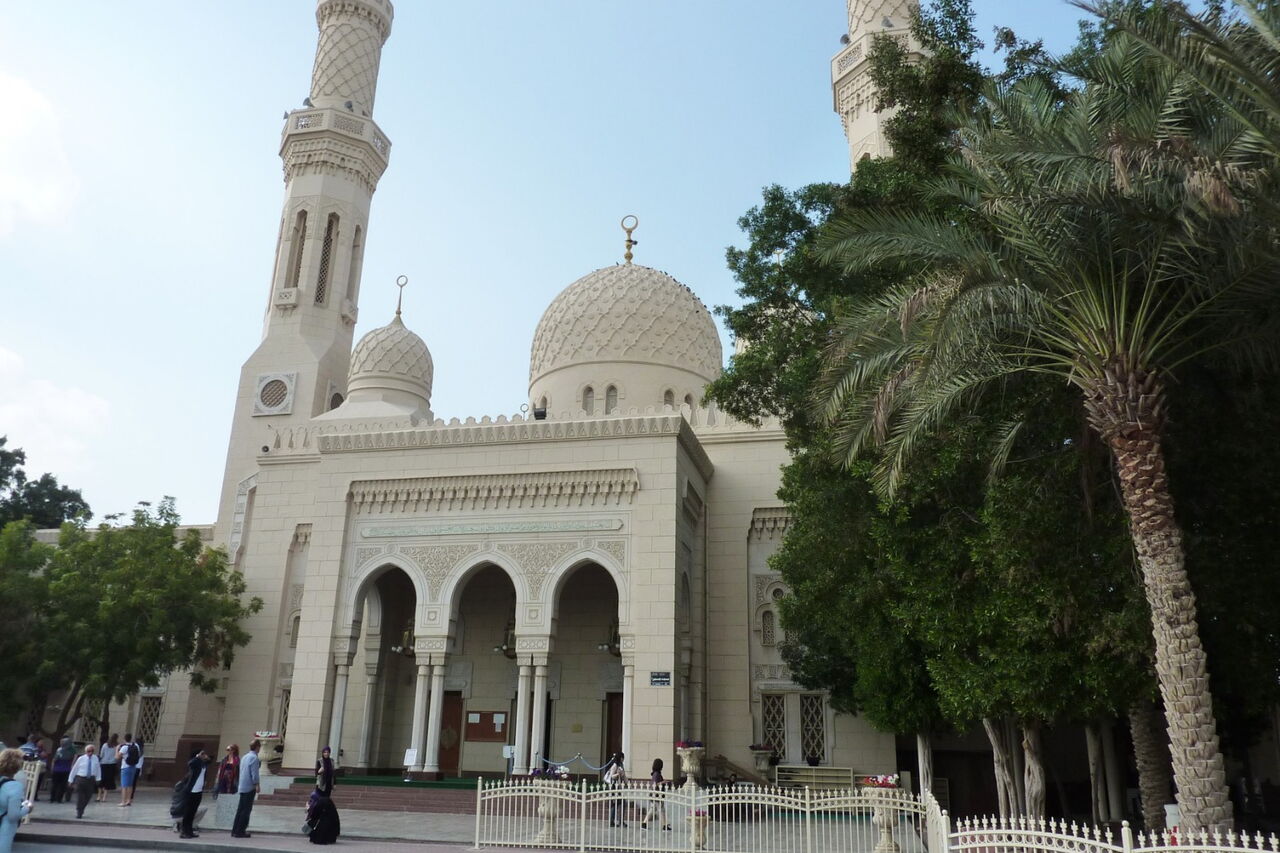 Die Jumeirah-Moschee ist die größte in Dubai und aufgrund ihrer elfenbeinernen Außenfassade ein imposantes Bauwerk. Sie kann im Rahmen einer kostenpflichtigen Führung besichtigt werden.