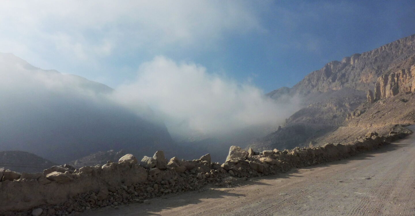 Die Schotterpiste beginnt am Ortsausgang von Khasab. Bereits nach 15 km biegen wir rechts ins Wadi, und es geht in steilen Serpentinen bergauf in eine Welt aus bizarren Felsformationen.
