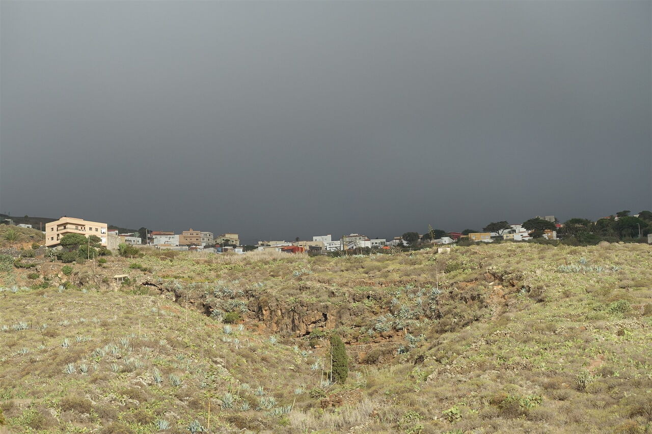 Bei einem Lavasteinhaus befinden sich viele Wegweiser. Wir ignorieren den Abzweiger Richtung (05) Echedo (223 m) und gehen links Richtung Valverde. Der Pfad auf schwarzen Lapilli mündet in eine geteerte Straße, der wir weiter bergauf folgen, bis sich nach 360 m ein großer Felsen am Wegesrand befindet. Hier gehen wir nur einige Meter rechts in die Hauszufahrt und dann links auf dem sehr steil ansteigenden Pfad. Auf der nachfolgenden Straße erreichen wir hinter einer Anhöhe ein großes Gebäude, überqueren die Straße nach halb rechts und gehen links in die gepflasterte Straße. Nach 75 m überqueren wir den Zebrastreifen und gehen in die Einbahnstraße, bis wir bei einem Stoppschild auf den Hinweg gelangen. Wir gehen das restliche Stück des Rückwegs auf dem bekannten Hinweg.